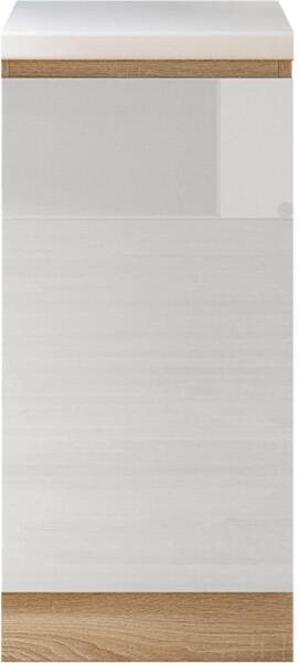 Szobák > Konyhabútor, étkezőbútor > Elemenként összeállítható konyhabútor > LINE - Egyajtós alsószekrény az elemes konyhabútorból modern stílusban és változatban. Anyag és színváltozat: minőségi laminált faforgácslap fehér extra magas fényű HG színváltozatban, sonoma tölgy kerettel. Méretek (SzéxMaxMé): 40x82x54,5 cm. Jobbos változatA munkalap vastagsága 38 mm. Szállítás munkalappal és alsóléccel. Szétszerelt állapotban szállítjukAlapkonyha: a váz DTD laminált sonoma tölgyfa, ajtók - , vagy a váz fehér magasfényű HG DTD laminált fehér/ajtók sonoma tölgyfa. Felső méret a füstelszívó szekrénykével: 2,6 m, alsó méret: 2,6 m, a munkalap 38 mm vastag. Minden alsó szekrény munkalappal és alsó léccel van szállítva. Vásárolható hozzá univerzális (B/J) mosogató, ár: 30 900 Ft. Lehetőség van hozzávásárolni 38 mm vastag munkalapot, ár: 20 500 Ft/fm.