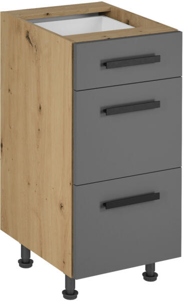 Tempo Alsó Szekrény, Artisan Tölgy/Szürke Matt, Fogantyúkkal, Langen D40S3 U