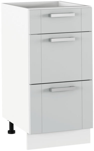 Szekrény Anyaga: laminált DTD/MDF fóliázott Szekrény színe: világosszürke/fehér Fogantyú anyaga: fém Fogantyú színe: matt króm Méretei (SzéxMéxMa): 40x52x82 cm Anyag vastagsága: 16 mm Fiókokkal Lábakkal Fém fogantyúval Üveggel szállítva Műanyag lábak Minőségi szlovák termék Bontásban szállítva. A szekrényeket alsó léccel, munkalap nélkül szállítjuk. A munkalap ára a 23 900 Ft/fm 38 mm vastag.